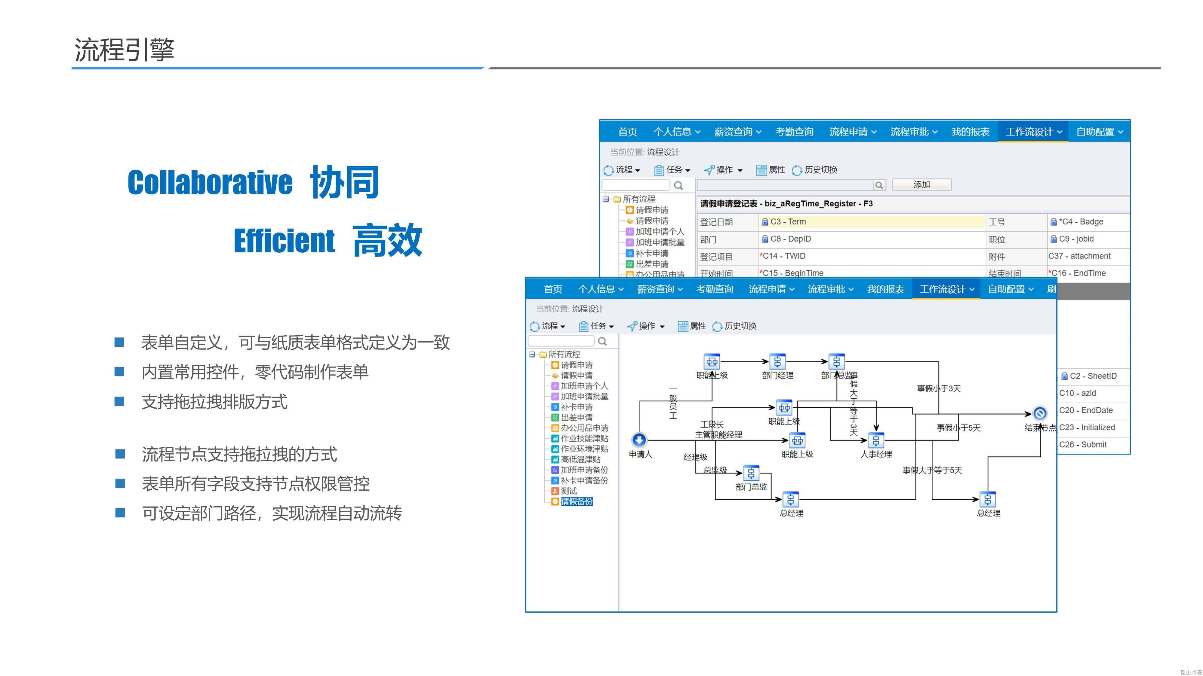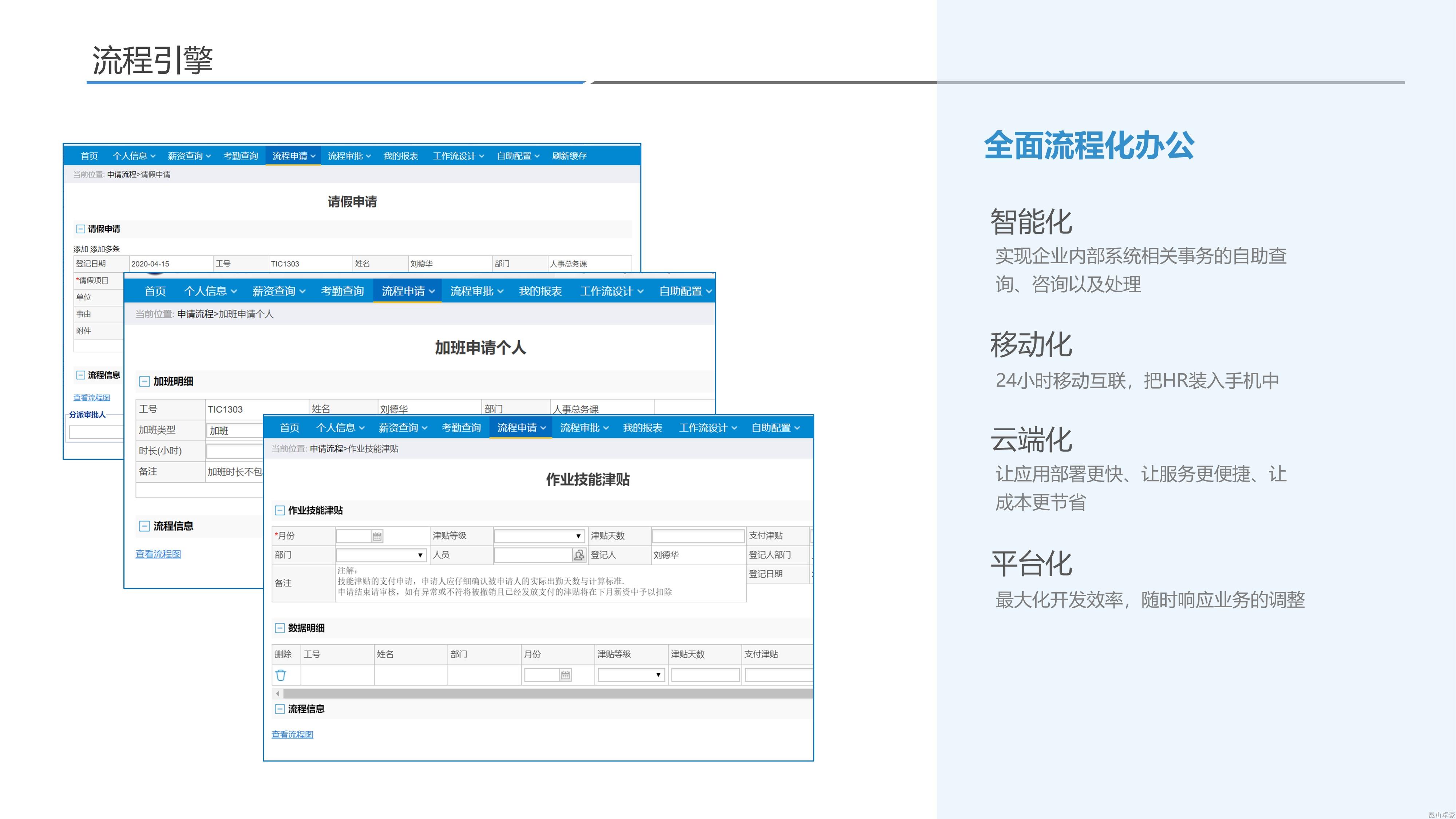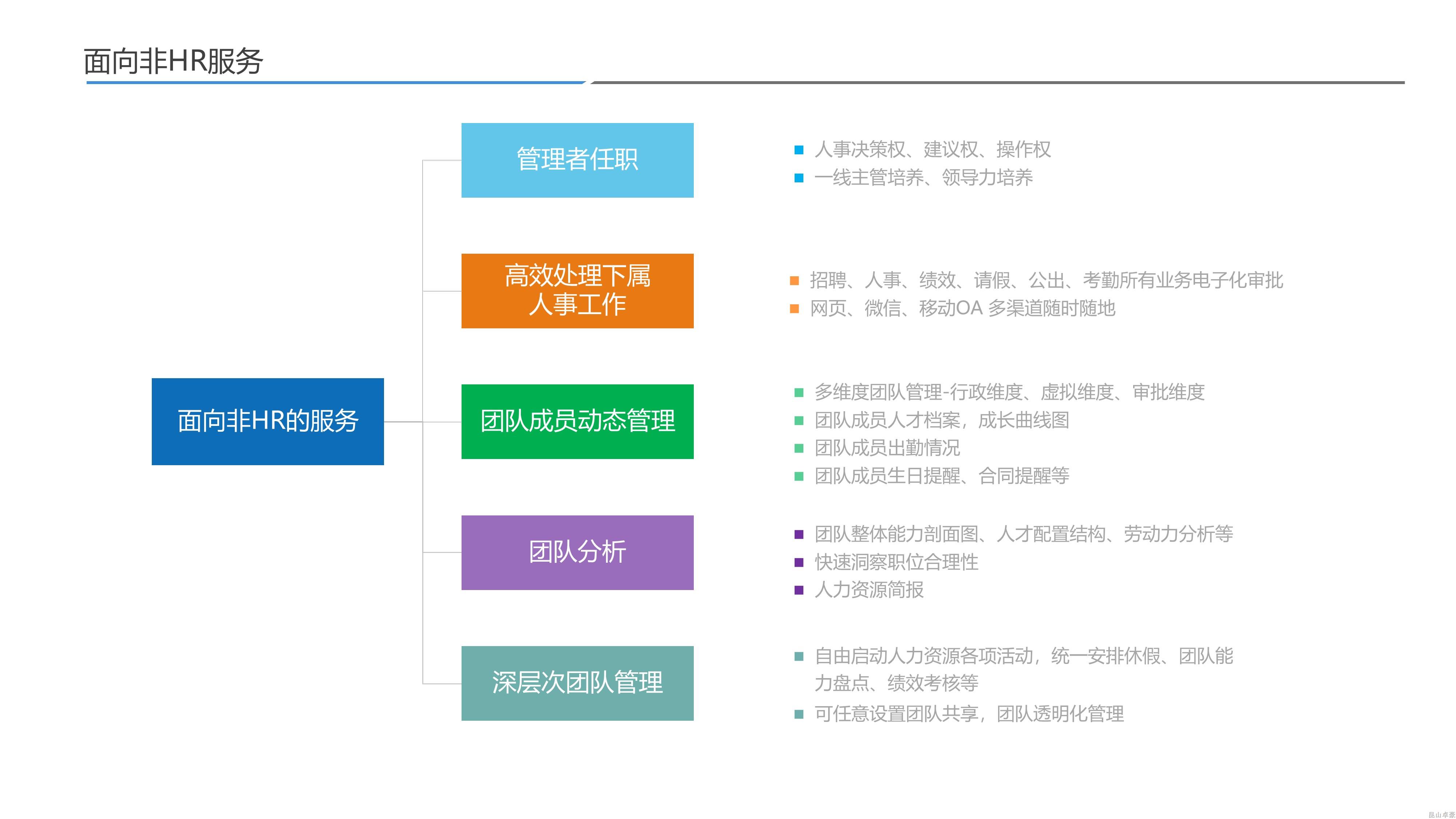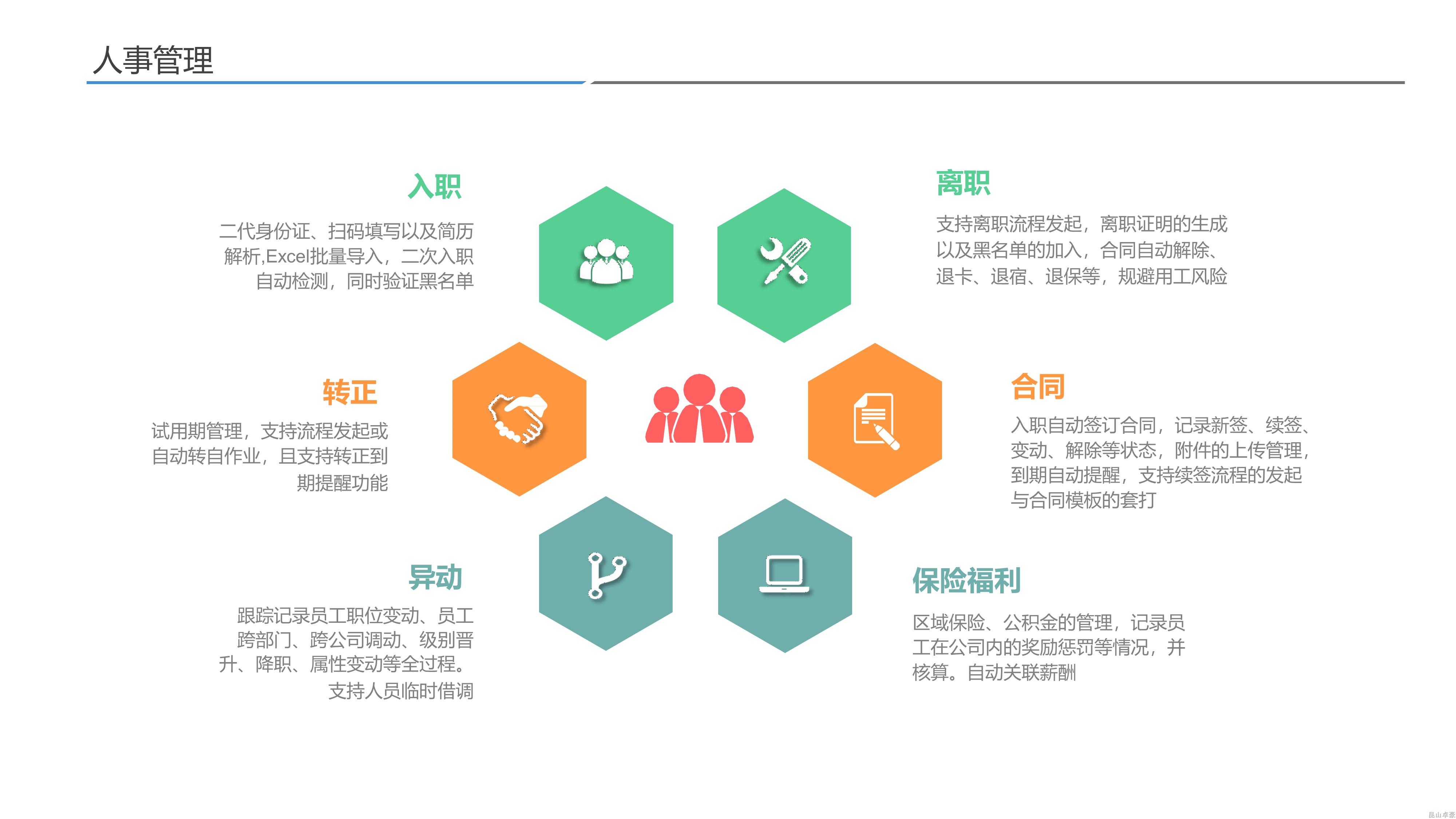 全面覆盖企业人力资源管理所有职能,采用模块化,组件式的应用方式,可根据具体需求灵活组合&拆分。