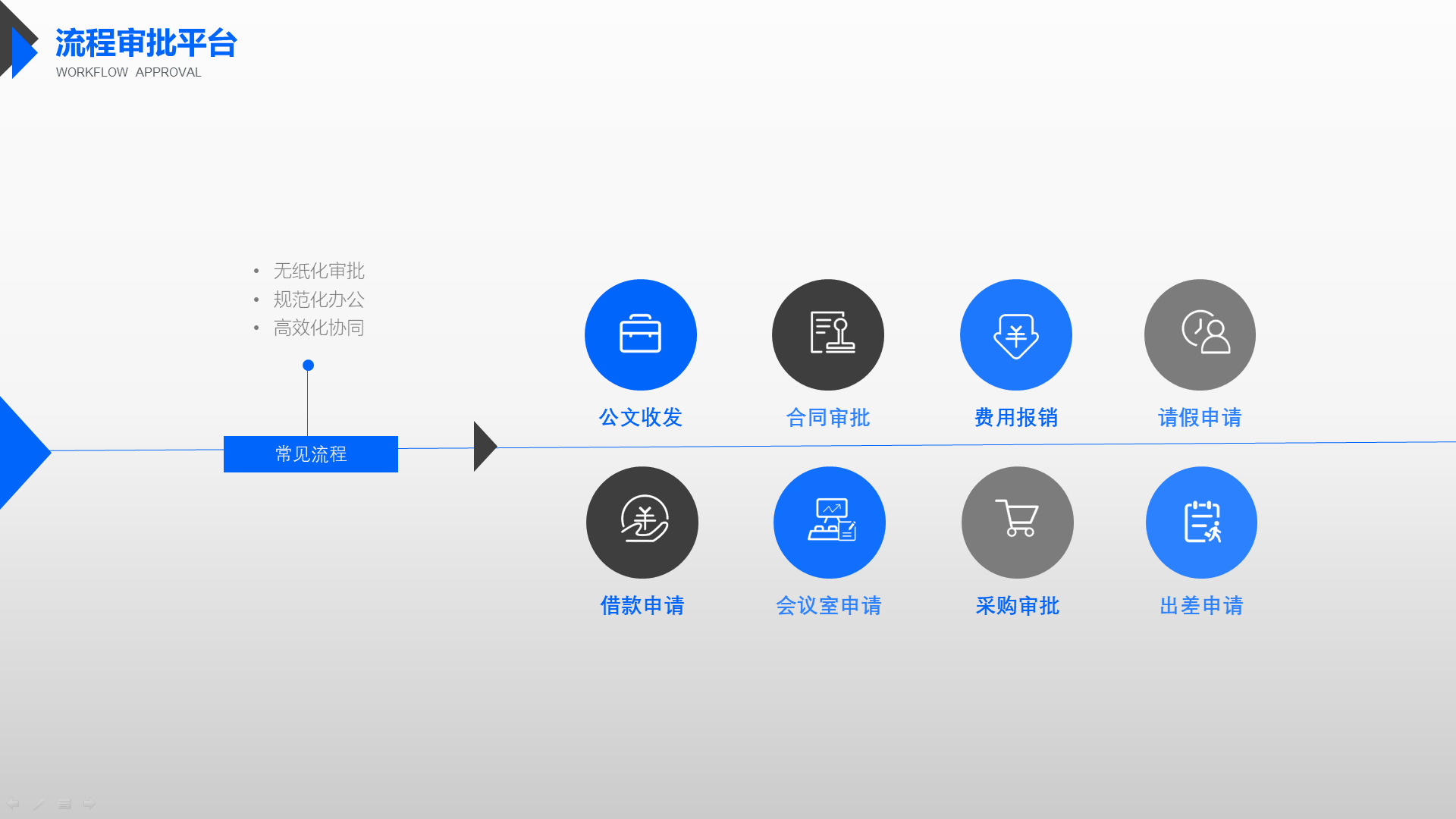 赋予企业流程更强能力,消息、时间、移动、发布、订阅、催办、权限、附件、授权、传阅、关联、标签,12大机制,支撑流程灵活调用,让流程应用能力更强。