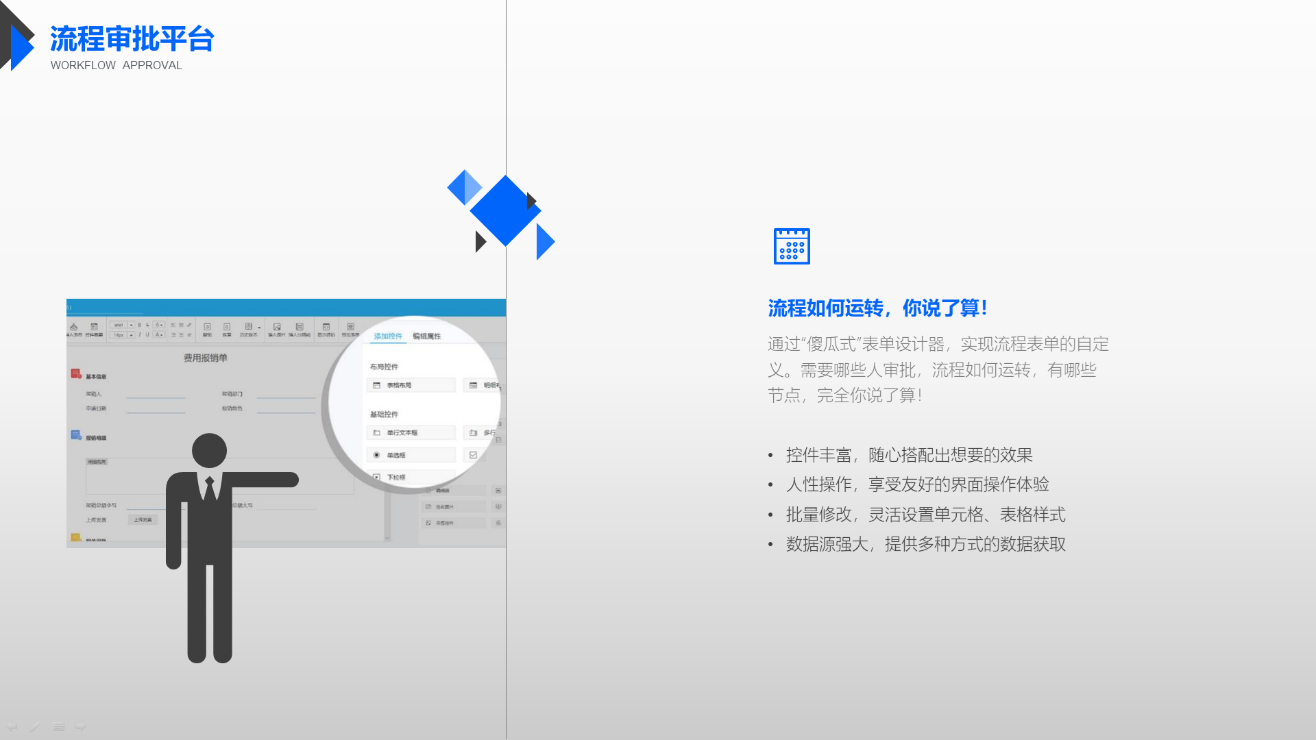 让协作更合规、更高效,通过流程与制度、知识、流程、数据、报表间的关联与融合,批中强化合规管理、知识学习、数据共享,决策更科学,协作更高效。