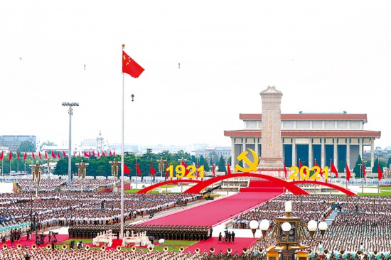 2021年7月1日上午,庆祝中国共产党成立100周年大会在北京天安门广场隆重举行。新华社记者 兰红光 摄