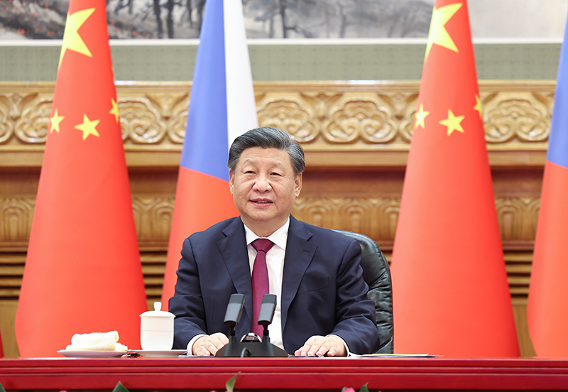1月9日下午,国家主席习近平在北京同捷克总统泽曼举行视频会晤。新华社记者 丁海涛 摄