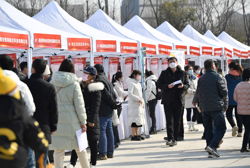 1月31日,求职者在西安市周至县招聘会现场寻找工作机会。新华社记者 邵瑞 摄